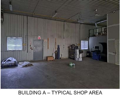 • Building A was built circa 1989 and includes approximately 5,000 SF. The building comprises one oversized drive-in door (three drive-in doors are currently not operational) and a clear height estimated at 19 feet.