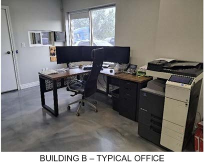• Building B was constructed circa 2004 and includes 10,000 SF of space consisting of finished office, reception space, washrooms, and industrial area. The ceiling height is estimated at 25 feet. Additional mezzanine space is not included in the building area.